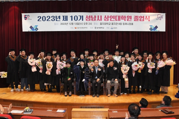 성남시(시장 신상진)가 13일 을지대학교 을지관 8층 밀레니엄 홀에서 ‘2023년 성남시 상인대학원 졸업식’을 개최했다.