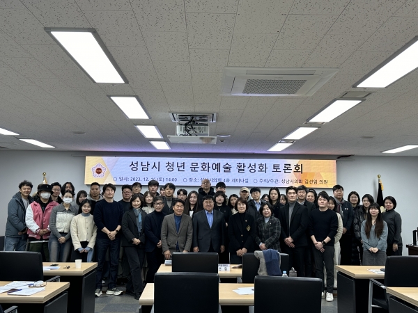 [광성일보] 김선임 성남시의원(더불어민주당, 태평1․2․3․4)은 성남시 청년 예술가 지원을 위한 정책 방안 마련 등을 논의하고자 지난 16일 성남시의회 세미나실에서 ‘성남시 청년 문화예술 활성화 토론회’를 개최했다. 토론회를 주최한 김선임 의원은 개회사를 통해 “성남시는 일년내내 축제라는 말이 들릴 정도로 다양한 행사가 펼쳐지는데, 지역 청년들이 참여할 수 있는 축제는 많지 않은 것 같다”면서, “성남시 청년 문화예술 활성화를 위해 학계 전문가를 초청하여 청년 당사자들과 솔직하게 소통할 수 있는 자리를 마련하고 싶었다”고 밝혔다.