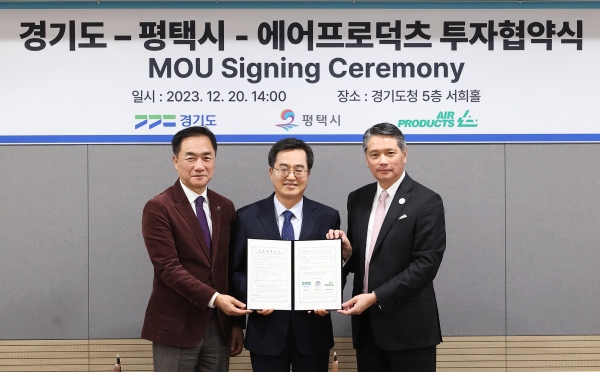 [광성일보] 세계적인 산업용 가스 생산 전문기업 미국 에어프로덕츠사가 경기도 평택 포승(BIX)지구에 청정그린수소 생산시설을 조성하기로 했다. 총투자액은 5억 달러(한화 약 6,500억 원)이며 약 550명의 고용도 창출한다.김동연 경기도지사는 20일 경기도청에서 윌버 목(Wilbur W. Mok) 에어프로덕츠 아시아대표, 정장선 평택시장과 이 같은 내용의 투자협약을 체결했다.김동연 지사는 “지난번 본사 방문 시 경기도 기후변화 대책을 설명했을 때 세이피 가세미 회장께서 지사의 정책 방향이 그렇게 확고하다면 에어프로덕츠에서 제한 없이 투자하겠다는 말씀을 하셨다”며 “그 결실로 추가 투자를 하게 돼서 대단히 기쁘고 약속을 지켜주셔서 감사하다”고 말했다.