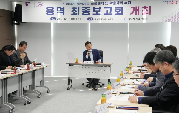 신상진 성남시장은 21일 오후 3시 성남시청 상황실에서 열린 ‘성남시 체육시설 균형배치 및 확충계획 수립 용역 최종보고회’에 참석했다.
