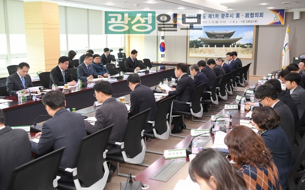 광주시는(시장 신동헌) 25일 시청 상황실에서 국·도비 확보 및 지역현안사업의 원활한 추진을 위해 ‘2019년도 제1차 당정협의회’를 개최했다.