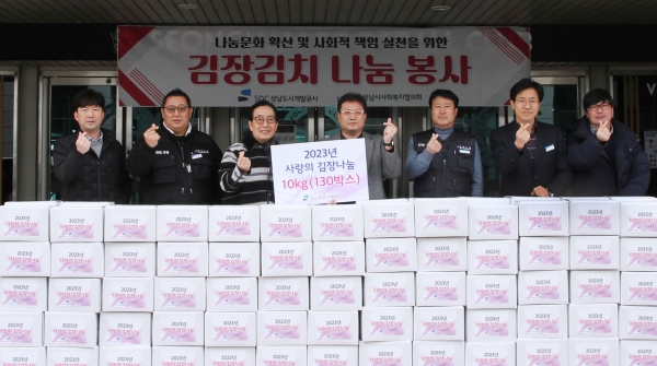 성남도시개발공사(사장 박민우, 이하 공사)는 지난 20일 성남시사회복지협의회(회장 노만호)에 김장김치 130박스를 전달했다고 22일 밝혔다.