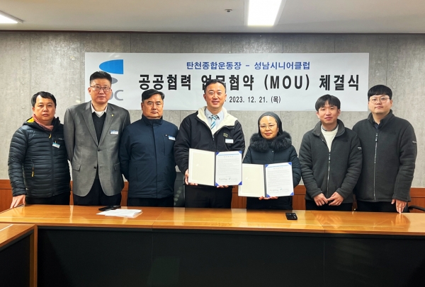 [광성일보] 성남도시개발공사(사장 박민우, 이하 공사) 탄천종합운동장은 지난 21일 시니어 일자리 창출 및 사회참여 활성화를 위해 성남시니어클럽(관장 이경분)과 업무협약을 체결했다고 26일 밝혔다.성남시니어클럽은 어르신들이 사회 구성원으로서 역할을 수행할 수 있도록 전문적인 일자리를 제공하는 노인 일자리 사업 전담 기관이다.