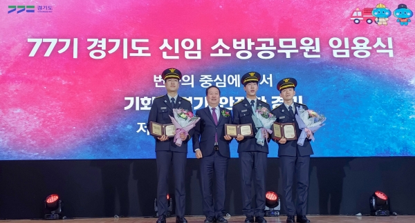 특히, “가장 위급한 순간 도민이 가장 신뢰하고 의지하는 것은 경기도 소방관이다”고 언급하며, “자부심을 갖고 나은 여건에서 업무를 수행할 수 있도록 힘쓰겠다”고 말하기도 했다.한편, 이날 임용식에는 신임 소방공무원 가족, 경기도의회 안전행정위원회 김시용, 이기환 의원, 김동연 도지사와 소방관 출신 오영환 국회의원이 등이 참석해 신임 소방공무원들을 격려으며, 427명의 신임 소방공무원들은 35개 소방관서에 배치되어 업무를 수행할 예정이다.