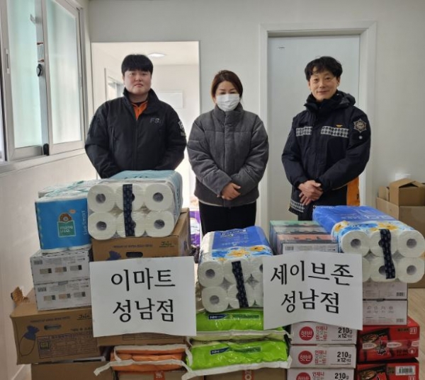성남소방서는 이마트 성남점 및 세이브존과 함께 화재 피해로 실의에 빠진 주민을 위로하기 위해 소화기와 생필품을 전달했다고 28일 밝혔다.