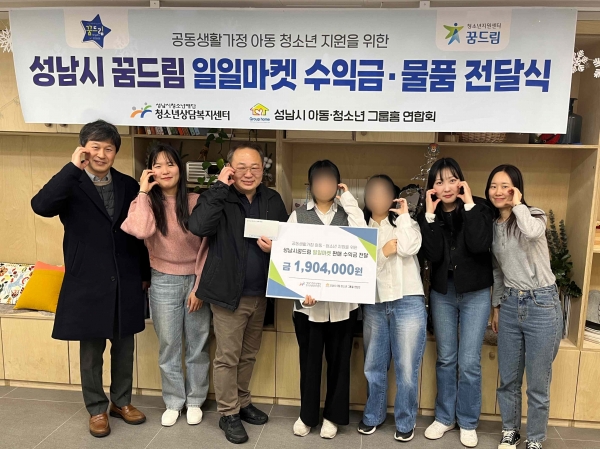 성남시학교밖청소년지원센터(이하 꿈드림)는 학교 밖 청소년의 경제 체험의 일환인 일일마켓으로 발생한 수익금을 성남시 아동, 청소년 그룹홈 연합회에 전달했다.