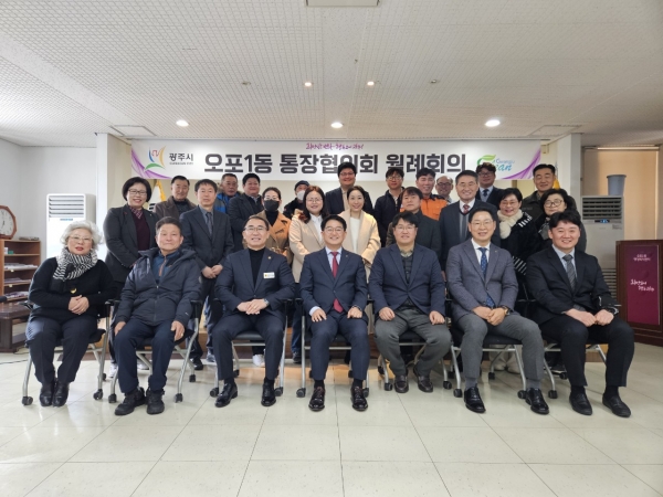 이에 대해 구정서 동장은 “오포1동에 행사나 재난 상황 등 모든 대소사에 협력해 주시는 통장협의회에 감사드리며 2024년도 잘 부탁드리며 갑진년 새해 복 많이 받으시고 건강하시길 바란다”고 말했다.한편, 오포1동은 지난 2022년 9월 분동 이후 책임동으로서 오포2동, 능평동 및 신현동 등 오포 권역 4개 동을 아우르는 행정업무를 펼치고 있으며 특히 이번 겨울 대설 및 한파에 주민 피해가 없도록 각고의 노력을 펼치고 있다.