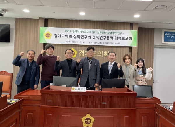 이날 보고회에는 연구회 최만식 회장을 비롯해 회원인 김선영 의원(경제노동위원회), 김철진 의원(문화체육관광〃) 등 회원과 농정해양전문위원실, 경기도 문화정책과, 연구용역 수행기관인 (사)다산연구소 연구진 등이 참석했다.다산연구소는 ‘경기도 문화정체성으로서 경기 실학문화 확립방안 연구’ 최종 연구용역 보고를 통해 경기도민 대상 설문조사 결과와 「경기도 실학연구 및 진흥에 관한 조례」 일부 개정안 등을 중점 설명하고 의견을 수렴했다.참석자들은 토론을 통해 ▲실학정신을 경기도 문화 정체성으로 확산시킬 방안 ▲실학연구센터의 사업과 역할 구체화 ▲경기도 실학연구 및 진흥을 위해 개정 조례에 명시할 사업 등을 논의했다.