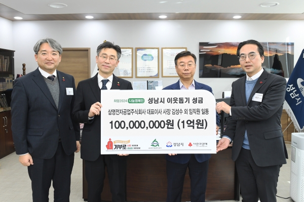 삼영전자공업㈜가 지역 내 한파 취약 가구를 지원하고 싶다며 1월 23일 성남시에 1억원의 성금을 맡겼다.