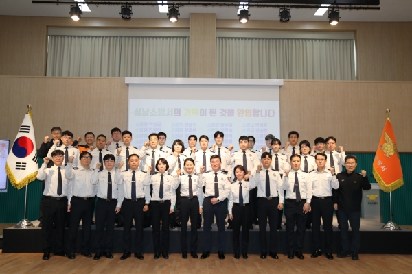 [광성일보] 경기도 성남소방서는 2024년 1월 22일 자 경기도소방재난본부의 정기인사로 성남소방서로 발령된 22명에 대하여 임용장 수여 및 환영식을 실시했다고 밝혔다.이번 인사는 ‘23년 하반기 경기도소방재난본부 조직개편에 따른 것으로 성남소방서는 구급대 4조 2교대 확대 및 하대원·신흥119안전센터 대응 인력 보강 등 현장 대응 중심의 인력으로 배치했다.