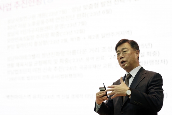 [광성일보] 신상진 성남시장은 25일 오후 2시 성남종합스포츠센터 다목적체육관에서 열린 ‘2024년 시민과의 새해 인사회(중원구)’에서 1000여 명의 시민을 직접 만나 동별 건의 사항을 청취하고 답변하는 시간을 가졌다.신 시장은 “매서운 한파에도 새해 인사회를 찾아주신 시민 여러분께 감사드린다”라며 새해 인사회를 찾아주신 시민들께 큰절을 올렸다. 이후 “성남의 새로운 50년의 첫해로 대한민국 특별도시 ‘새로운 성남’의 장을 열겠다”는 포부와 함께 주요 핵심 시정 현안인 ▲노후계획도시 정비 ▲성남시 의료원 대학병원 위탁 운영 ▲백현마이스 도시개발사업 등 핵심 시책 방향에 대해 자세히 설명하고 동별 건의 사항을 청취했다.