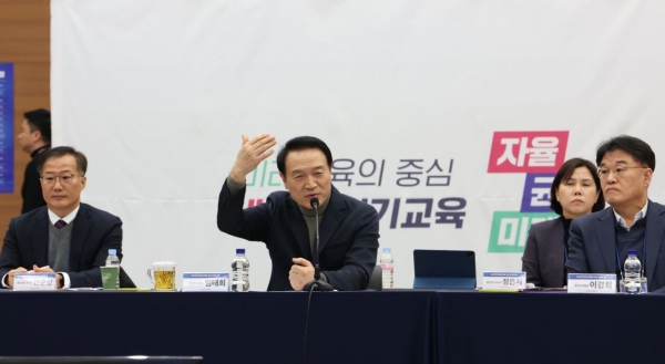 특히 경기교육 정책의 현장 안착과 정책 추진 역량을 강화하기 위해 기존의 부서별 발표 중심에서 ‘주제별 주요 과제 보고’와 ‘부서별 현안 사항 보고’ 방식으로 진행했다.주제별 주요 과제는 ▲학력향상 ▲교육활동 보호 ▲학교자율역량 강화 ▲지역교육협력 4가지이다. 각 주제와 관련한 여러 부서가 업무보고를 진행하고 전문가그룹과 토론을 진행해 균형 있는 의사결정과 해결방안을 모색했다. 전문가그룹과 함께하는 업무보고는 처음이다.학력향상을 위해 학생 맞춤형 교육, 에듀테크 활용, 진로교육, 교원 역량 강화 담당 부서가 협력하고, 학교자율역량 강화를 위해 학교자율과제, 학교재정 운영 자율성, 학교업무효율화, 학교평가를 연결해 학교교육력을 높인다는 취지다.임태희 교육감은 “교육은 개인과 사회의 삶의 에너지이고 생명이고 희망”이라며 “틈새 사이로 뿌리 내리고 싹을 틔울 수 있는 조건만 된다면 어두운 상황을 열어가는 역할을 해야 한다”고 말했다.