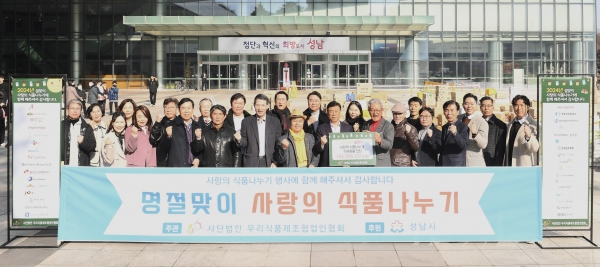 [광성일보] 성남지역 식품 관련 업체들의 모임인 ㈔우리식품제조협업인협회가 올해로 19년째 ‘사랑의 식품 나누기 행사’를 열어 어려운 이웃과 훈훈한 정을 나눴다.㈔우리식품제조협업인협회는 설 명절을 앞둔 1월 31일 오전 10시 성남시청 광장에서 1억4000만원 상당 먹거리를 28곳 사회복지시설에 전달하는 행사를 했다.