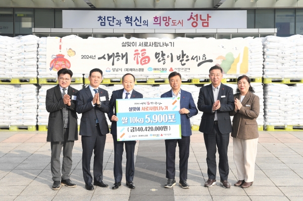 [광성일보] 성남시 소재 재단법인 에이스경암(이사장 안성호)이 설 명절을 앞둔 2월 1일 성남시에 1억4000만원 상당의 10㎏짜리 쌀 5900포대를 맡겼다.시는 이날 오전 9시 40분 시청 광장에서 신상진 성남시장, 안승만 상무 등이 참석한 가운데 ‘독거노인·가정위탁 아동을 위한 쌀 전달식’을 했다.받은 쌀은 국민기초생활보장수급 독거노인 가구와 가정위탁 아동이 사는 가구에 1포대씩 보내기로 했다.