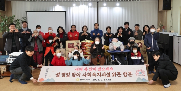 광주시의회(의장 주임록)는 설 명절을 앞둔 지난 6일 관내 사회복지시설 2곳에 생필품 등의 위문품을 전달했다.