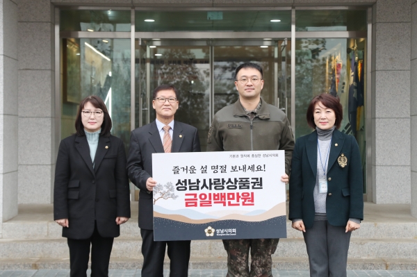 [광성일보] 성남시의회(의장 박광순)는 설 명절을 맞이하여 2월 6일 야탑동 소재 170여단 제3대대를 방문해 격려했다.설 연휴에도 시민의 안전을 위해 국방의 의무를 다하고 있는 군 장병들을 격려하기 위해 일백만 원의 성남사랑상품권을 전달하고 애로사항을 청취했다.