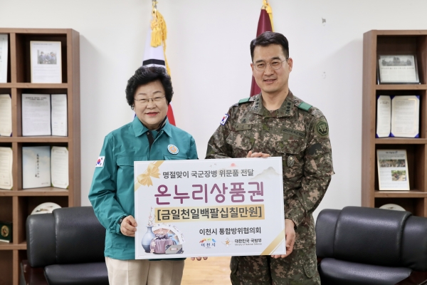 이러한 어려운 상황에서 국토방위를 위해 수고하는 관내 국군장병들을 위문하기 위해 이천시통합방위협의회가 나섰다. 이천시통합방위협의회에서는 매년 우리 고유의 명절에 관내 군부대를 방문하여 위문품을 전달하여 군 장병들의 노고를 격려해왔으며, 특히 온누리상품권으로 지급하여 지역경제 활성화에도 일조하고 있다. 위문품은 총 13개부대 11,870천원이 지급되었다.김경희 이천시장은 “명절인데도 고향에 가지 못하고 국방의 임무를 다하는 군 장병 여러분들 덕분에 가족들과 편안히 추석 명절을 보낼 수 있다”며 감사의 마음을 전했고,“앞으로도 시민의 안전과 생명을 지킨다는 사명감을 가지고 힘써주시기 바란다”고 당부하였다.