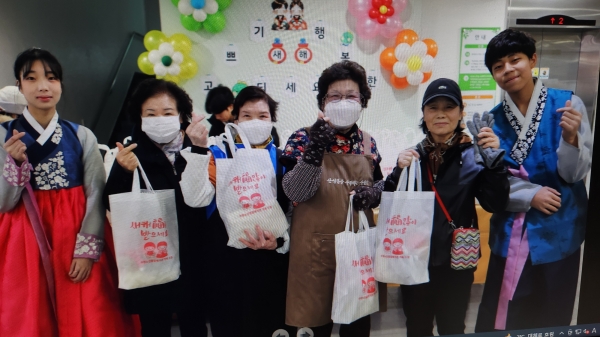 [광성일보] 수정노인종합복지관(관장 조성갑)은 지난 8일 설명절을 맞이하여 ‘어르신들의 설(레는)날’ 명절나눔행사를 진행했다.이번 행사는 한국폴리텍대학교, 서울 한솔 라이온스클럽 354-D지구의 후원을 받아 복지관 이용회원 및 취약계층 어르신 1,500명을 대상으로 명절음식과 설날행복 꾸러미를 전달하는 형식으로 진행되었다. 설날행복 꾸러미는 떡국떡(1kg), 사과 2개, 배즙 5개, 양말로 구성되었으며, 성남시 내 중·고등학교 학생 봉사자와 서울 한솔 라이온스클럽 자원봉사자 23명이 협력하여 전달하였다.