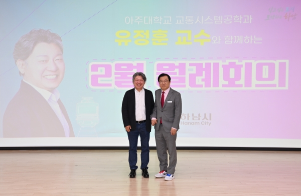 이어서 진행된 강연은 아주대학교 교통시스템공학과 교수이자 대한교통학회 수석부회장을 맡고 있는 유정훈 교수가 ‘모빌리티 혁명에 따른 수도권 공간구조 변화와 교통 정책 방향’을 주제로 진행했다.유정훈 교수는 “지속적인 수도권 확장과 대도시권 계획에서 광역교통 문제의 해결이 핵심이다”라고 강조하며, 해외의 사례를 통해 광역철도의 중요성을 역설하고 한강 상류에 위치한 하남시의 지리적 특성과 GTX 성공 전략에 대해 설명했다.또한 이동 수단 혁명과 산업 확장성 및 잠재력을 강조하며 새로운 교통환경과 통행 수요에 대해 소개했다.마지막으로 미래 이동 수단을 위해서는 다양한 교통수단 연계가 필수라며 현직에서 일하는 일선 직원들 또한 교통수단의 칸막이를 없애는 노력을 해줄 것을 강조했다.