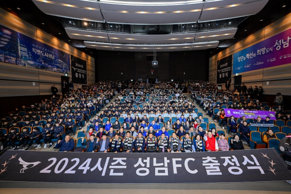 [광성일보] 신상진 구단주를 비롯한 내빈, 성남FC 선수단, 성남FC 팬 500여 명이 자리를 빛냈고 2024시즌 성남FC 선수단과 팬이 처음으로 만나는 자리인 만큼 행사장은 팬들로 가득했다.출정식은 신상진 구단주의 격려사와 이기형 감독의 출정사가 이어졌다.이기형 감독은 “출정식에 함께 해주신 많은 팬과 성남 시민들께 진심으로 감사드린다.