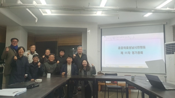 [광성일보] 성남환경운동연합 사무실에서 열린 2024년 공공의료성남시민행동 제11차 정기총회에서 김용진 백승우 전 공동대표, 박재만 길벗한의원 원장 3인을 공동대표로 선출됐다.사무처장에는 정인열 씨, 감사에는 김진선 씨를 각각 선출했으며 단체 운영위원외에 6명의 운영위원을 추가 선출했다.이날 총회에서는 김용진 공동대표의 진행으로 사전행사에 여는 인사, 각계 인사 축사, 2023년 활동 돌아보기 영상에 이어 의장 선출, 성원 보고 및 개회 선언, 서기 지명, 전차 회의록 보고, 안건 상정, 안건으로 ‘2023년 사업보고 및 평가’ ‘결산보고’ ‘감사 결과보고서 채택’ ‘2024년 임원 선출’ ‘2024년 사업계획’ ‘2024년 예산’ 등의 안건을 처리하며 진행됐다.