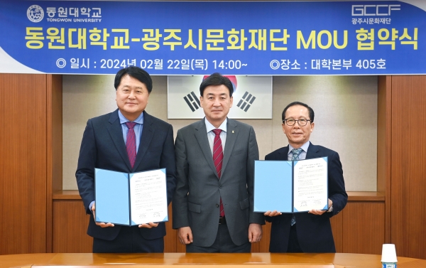 (재)광주시문화재단(대표이사 오세영)과 동원대학교은 지역 문화진흥을 위한 업무협약(MOU)을 체결