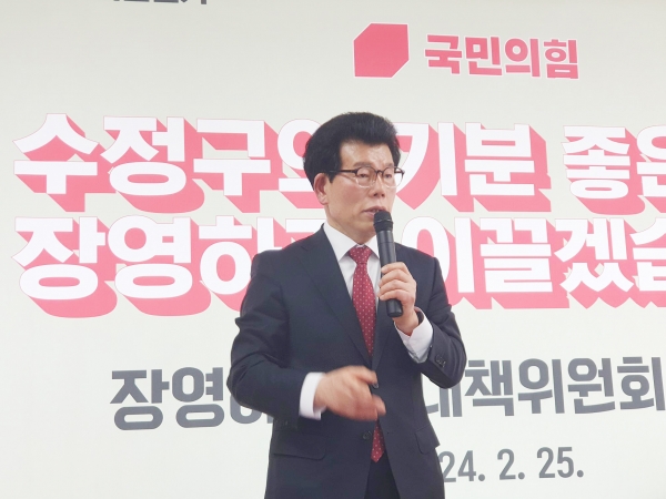 [광성일보] 성남 수정구에 출사표를 던진 국민의힘 장영하 예비후보가 총선승리를 위한 결의를 다졌다.장 예비후보는 25일 수정구 태평동 선거사무소에서 선거대책위원회 출범식을 가졌다.국민의힘 공천자로 결정된 장 예비후보는 “수정구 발전을 위해 저와 함께 노력해 주실 선대위 구성원들께 깊이 감사드린다”며 “살기좋은 수정구를 만들기 위해 다같이 힘을 모아달라”고 강조했다.