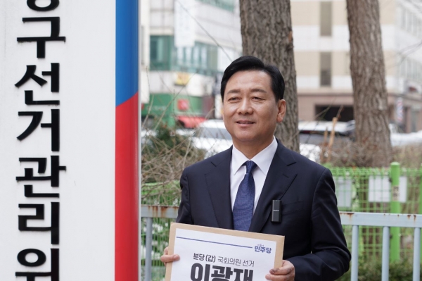 [광성일보] 이광재 더불어민주당 분당(갑) 예비후보가 27일 14시 분당구 선거관리위원회에 후보 등록하며 본격적인 선거 행보의 시작을 알렸다.‘새로운 분당, 더 큰 판교’를 기치로 내건 이 후보는 “분당 판교 주민을 만나기 위해 오래 기다렸다. 죄송한 마음”이라며 “이제 곳곳에서 발로 뛰며 주민들을 찾아 뵙고 인사드릴 것”이라고 각오를 전했다.‘민주당 험지’ 분당에 출마하면서 이 후보가 2022년 지방선거 강원도지사 출마에 이어 두 번째 선당후사 정신을 보여줬다는 평이 나온다. 지난 대선에서 13%P 차이로 패배한 분당에서 승리해 “노무현이 못다 이룬 통합의 꿈”을 실현하겠다는 각오다.