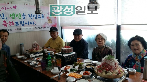 이날 생신잔치에는 3월 생일을 맞은 관내 저소득 독거 어르신 중에서 네 분을 초대해 진행하였다. 협의체 위원과 식당종사자들은 어르신들을 위하여 축하 케이크 점화와 함께 생일축하 노래를 부르고 선물전달과 식사를 같이 하며 즐거운 시간을 보냈다.