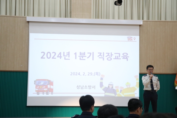 성남소방서(서장 홍진영)는 2월 29일 2층 대강당에서 소방공무원의 직무수행에 필요한 소양 함양과 공직자로서 올바른 윤리관 확립을 위한 2024년 1분기 직장교육을 실시했다고 밝혔다.