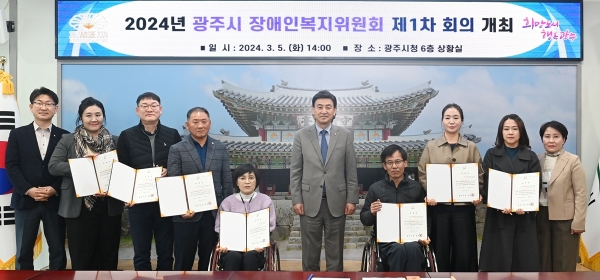 또한, 위원들은 2024년도 장애인복지사업과 종합계획 수립 건에 대한 다양한 의견을 나눴으며 지역 내 장애인복지 문제에 대해 함께 고민하고 해결할 수 있도록 민‧관이 협력해 나가기로 했다.이에 대해 방세환 시장은 “장애인을 대표하는 위원들의 고견을 모아 광주시 장애인복지를 위한 정책을 마련하겠다”며 “위원들의 심도 있는 자문과 심의를 부탁드린다”고 말했다.한편, 광주시 장애인복지위원회는 위원장인 시장을 포함해 복지문화국장, 기획예산과장, 장애인 관련 단체장, 대학 교수 및 장애인 관련 센터 종사자 등 15명으로 구성돼 있다.