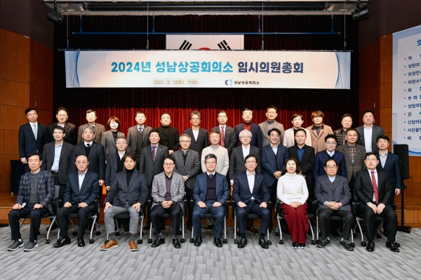 [광성일보] 정영배 회장((주)비제이 회장)이 성남상공회의소 제17대 회장에 이어 제18대 회장에 연임되었다. 성남상공회의소는 3월 12일(화) 11시 대강당에서 제18대 상의의원 39명(총49명)이 참석한 가운데 「2024년도 임시의원총회」을 개최하였다.이날 정영배 회장은 성남상공회의소 제18대 회장에 만장일치로 추대되어 앞으로 3년의 임기동안(2024.3.13 ~ 2027.3.12) 성남지역 종합경제단체인 성남상공회의소를 이끌어가게 되었다.