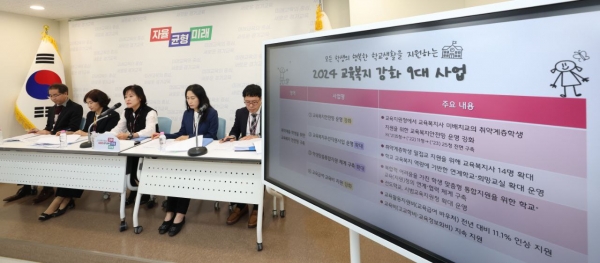 셋째, 학교 안팎 학생을 아우르는 다양한 대안교육 기회를 제공한다.학교 안 학생을 위한 학업중단예방 집중지원학교, 학교 내 대안교실 687교 운영(전년 대비 60교 증가), 학교 밖 학생을 위해 도교육청 등록 대안교육기관 지원비를 전년 대비 9억원 증액했다.도교육청 엄신옥 교육복지과장은 “취약계층, 학교 밖 청소년을 비롯해 모든 학생이 건강한 성장판을 가지고 미래로 나아갈 수 있도록 지원하겠다”라며 “교육복지 사업을 강화해 정교하고 튼튼한 교육복지 안전망을 만들어 나가겠다”고 말했다.