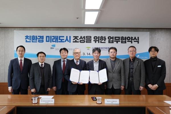 지난 14일 녹색 건축도시 및 친환경 미래도시 조성을 위해 한국환경건축연구원(이사장 이경회)과 업무협약을 체결했다고 15일 밝혔다.