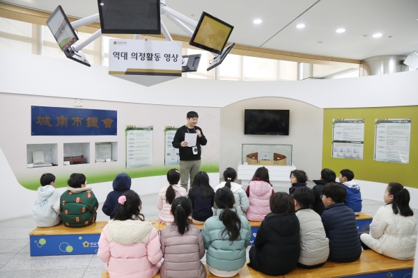 또한 성남시의 지역구와 지역 의원, 비례대표 의원들을 보여주는 지도를 함께 살펴보며 선거제도에 대해 생생하게 공부하는 시간을 가졌다.이어서 방문한 본회의장에서는 본회의가 진행되는 의원석에 앉아 본회의장의 각종 시설물과 회의 진행 과정에 대해 알아본 후, 실제 회의가 진행되는 영상을 시청하며 안건이 처리되는 과정을 상세히 배웠다. 또한 직접 의사봉을 두드려 보는 ‘의사봉 3타 체험’을 하고, 성남시의회 SNS 캐릭터 ‘이로운’과 함께 기념사진을 촬영하며 견학을 마쳤다.