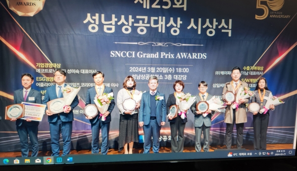 이번 상공대상 수상자 선정은 지난 2월 14일(수) 산ㆍ학ㆍ관의 심사위원들로 구성된 <제25회 성남상공대상 심사위원회>에서 엄정하고 공정한 심사를 거쳐 8개 분야 수상자를 선정하였다.부문별 수상자는 ▲기업경영대상 에코트로닉스(주) 성미숙 대표이사 ▲ESG경영대상 어플라이드머티어리얼즈코리아(주) 김지혜 이사 ▲노사협력대상 ㈜휴플러스 서창범 이사 ▲기술품질대상 ㈜삼우에스앤티 김귀현 이사 ▲수출기여대상 ㈜케이피아이 김기남 대표이사 ▲S/W개발대상 삼일씨티에스㈜ 최종원 대표이사 ▲행정지원대상 분당서울대학교병원 공현식 대외협력실장 ▲최우수성장기업상 ㈜하이비젼시스템 최두원 대표이사 등 총 8명이 수상의 영예를 안았다.성남상공회의소 정영배 회장은 기념사를 통해“상공대상 시상식은 한 해 동안 지역산업과 기업 가치를 위해 우수한 성과를 이루신 분들을 찾아서 그 노고를 인정하고 기뻐하는 매우 의미 있는 자리이다.”며, “오늘 이 자리에서 수상자들을 축하하고 함께하는 축제의 장이 되어 지역경제에 큰 활력을 불어넣기를 희망한다.”고 전했다.