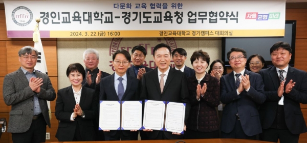 [광성일보] 경기도교육청(교육감 임태희)이 전국에서 다문화학생이 가장 많은 경기도(27%) 예비 교원의 다문화교육 전문성을 키워 학교 현장의 다문화교육 전문역량을 갖추도록 지원한다.도교육청은 22일 오후 경인교육대학교와 다문화교육 업무협약을 맺고, 경인교대 모든 학생이 임용 전 다문화교육 역량을 강화하는 데 함께 노력을 기울인다.