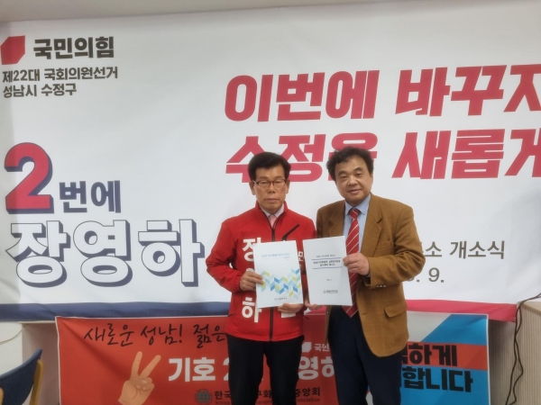 [광성일보] 국민의힘 수정구 장영하 후보는 의약품 안전을 위해 노력하겠다고 밝혔다.장 후보는 25일 선거사무소에서 성남시약사회와 정책간담회를 개최했다.이 자리에서 한동원 성남시약사회장은 “성남시의료원은 시민이 주인이면서 공공의료기관인 만큼 성분명 처방을 통해 건강보험재정 부담을 덜어주도록 할 필요가 있다”고 강조했다.