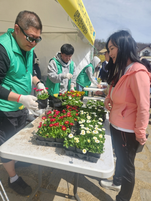 [광성일보] 지난 22일부터 24일까지 3일간 이천시 백사면 도립리 일원에서 개최된 제25회 이천백사산수유꽃축제에서 이천시 청년 새마을 연대(회장 최병무)는 “자연을 TAKE-OUT 하세요”라는 주제로 탄소 중립 운동 캠페인을 진행하였다.이번 행사는 축제 기간 배출되는 쓰레기 중 업사이클링 할 수 있는 음료 플라스틱 컵을 활용하여 예쁜 꽃 식재 후 다시 방문객들에게 화분화 하여 돌려주는 행사 진행으로 지역의 환경보전을 통해 청정 이천을 만들고자 추진되었다.