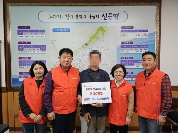 이날 전달은 지난 1월에 신둔면 수하리 비닐하우스에서 화재가 발생하여 키우고 있던 농작물에 많은 피해를 입은 가구로, 신둔면지역사회보장협의체 위원 및 주민들이 모은 성금 100만원을 전달하였다.