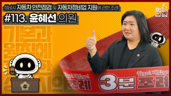 [광성일보] 성남시의회는 ‘3분 조례-윤혜선 의원 편’ 영상을 시의회 공식 SNS에 게시했다.이번에 소개된 조례는 윤혜선 의원 등 22명이 발의한 ‘성남시 자동차 안전점검 및 자동차정비업 지원에 관한 조례’이다.