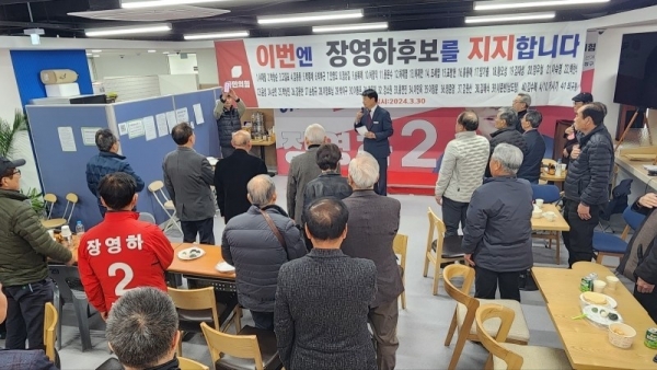 민주당 예비후보 등록을 했던 박창순 전 경기도의원은 민주당을 탈당하고 장 후보 선거캠프에 합류했으며, 안유성 자유통일당 전 예비후보도 장 후보 지지를 선언했다.향우회 차원의 예방도 있었다. 호남향우회와 영남향우회 임원진은 선거사무소를 방문해 장 후보를 격려했다. 이밖에도 개인적으로 지지하는 유권자들의 선거사무소 방문도 이어지고 있다.장영하 후보는 “많은 분들의 관심과 성원, 지지선언 덕분에 지치지 않고 선거운동에 임하고 있다”며 멋진 정치로 성원에 보답하겠다고 밝혔다.