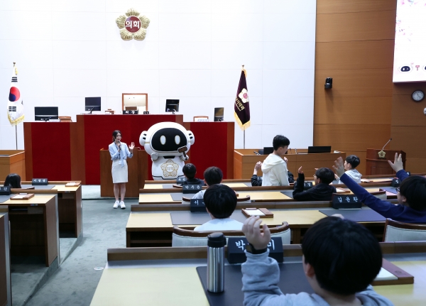 [광성일보] 초림초등학교 6학년 학생 30명이 12일 오전 성남시의회 홍보관을 견학했다. 방문한 학생들은 서은경 의원의 환영 인사를 받았다.학생들은 성남시의회 1층 홍보관을 관람하며 우리 시의 시의원 수와 시의원의 역할 그리고 주민을 대신하여 지역의 중요 의사를 심의·결정하는 시의회의 기능에 대해 배우는 시간을 가졌다.