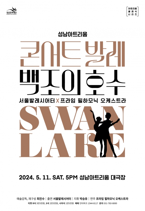 [광성일보] 성남문화재단은 부모와 아이가 함께 즐기는 발레 무대, 콘서트 발레 <백조의 호수>서울발레시어터와 프라임 필하모닉 오케스트라가 콘서트 발레 <백조의 호수>로 성남아트리움 대극장 무대에 선다.발레 <백조의 호수>는 악마 로트바르트의 저주에 걸려 낮에는 백조로, 밤에는 사람으로 변하는 오데트 공주와 지그프리트 왕자의 동화 같은 사랑 이야기를 그린 작품이다.