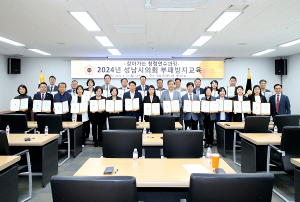 [광성일보] 성남시의회(의장 이덕수)에서는 지난 4월 22일 의회 4층 세미나실에서 성남시의회 의원을 대상으로 부패방지교육을 하였다.이번 교육은 2년 전 시행된 공직자의 이해충돌방지법에 지방자치단체 정무직 공무원이 대상으로 포함되었고, 지방의원들의 사적 이해관계나 겸직 문제가 사회적으로 많은 이슈가 되어, 시민들의 높은 도덕적 기대치에 부응하는 청렴한 성남시의회로 거듭나기 위해 교육을 실시하였다.