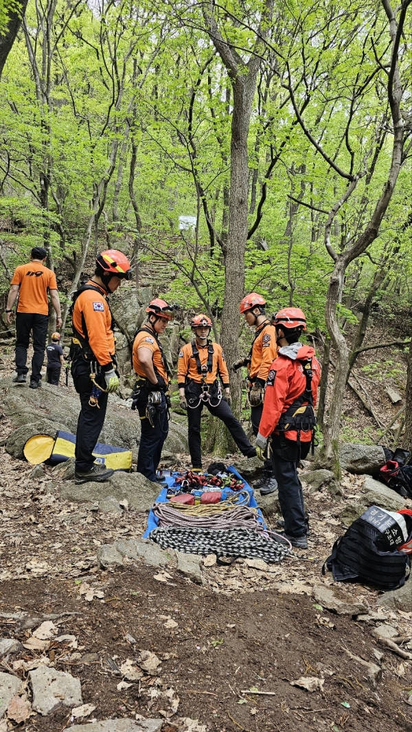 [광성일보] 성남소방서(서장 홍진영)는 4월 22일부터 24일까지 3일 동안 청계산 선녀폭포 일원에서 “봄철 산악사고 대비 구조대원 특별훈련”을 실시한다고 밝혔다.이번 특별훈련은 등산객이 증가하는 봄철을 맞이하여 산악사고를 대비해 구조대원의 상황대처능력을 강화하고 산악구조장비 활용을 통한 전문구조기술능력 향상을 위해 추진되었다.