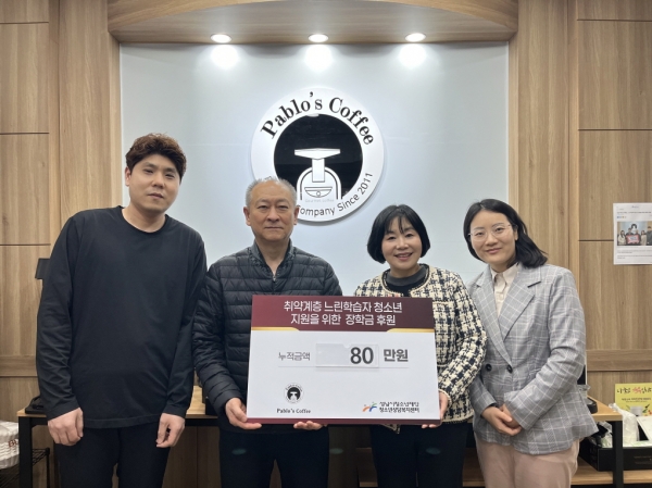 [광성일보] 성남시청소년재단 성남시청소년상담복지센터(소장 임낙선)는 2024년 1분기 동안 20,900천원의 장학금을 위기 청소년에게 전달했다고 밝혔다.성남시청소년상담복지센터는 성남시한의사회, 재단법인윤해재단, 파블로스로스팅컴퍼니 3개 민간단체와 협력하여 위기 청소년을 지원하고 있다.