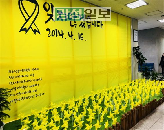 성남시청소년재단 중원청소년수련관(관장 정영숙)은 세월호 참사 5주기를 맞아 수련관 소속 자치기구 청소년들이 4월 13일(토)부터 4월 20일(토)까지 중원청소년수련관 1층 로비에서 추모행사를 진행한다고 밝혔다.
