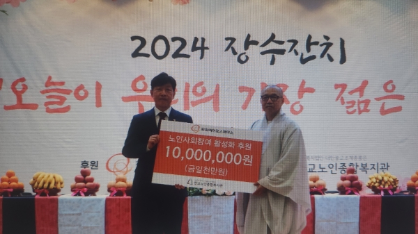 [광성일보] 판교노인종합복지관(관장 일운)에서는 5월 3일(금), 어버이날을 맞이하여 한화에어로스페이스에서 후원을 받아 장수잔치 '오늘이 우리의 가장 젊은 날'을 진행하였으며, 장수잔치뿐만 아니라 노인의 사회참여 활성화를 위한 후원금 1,000만원을 전달하였다.이날 행사에는 주요 내빈 및 복지관 이용자 150명이 참석한 가운데 후원금 전달식을 진행되었으며, 전달식을 통해 한화에어로스페이스와 판교노인종합복지관의 유기적 협력을 도모했다.
