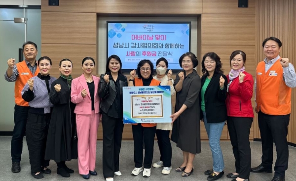 성남시강사협의회(회장 김보령)에서 어버이날을 맞아 무료 급식소에 후원금 300만 원 전달